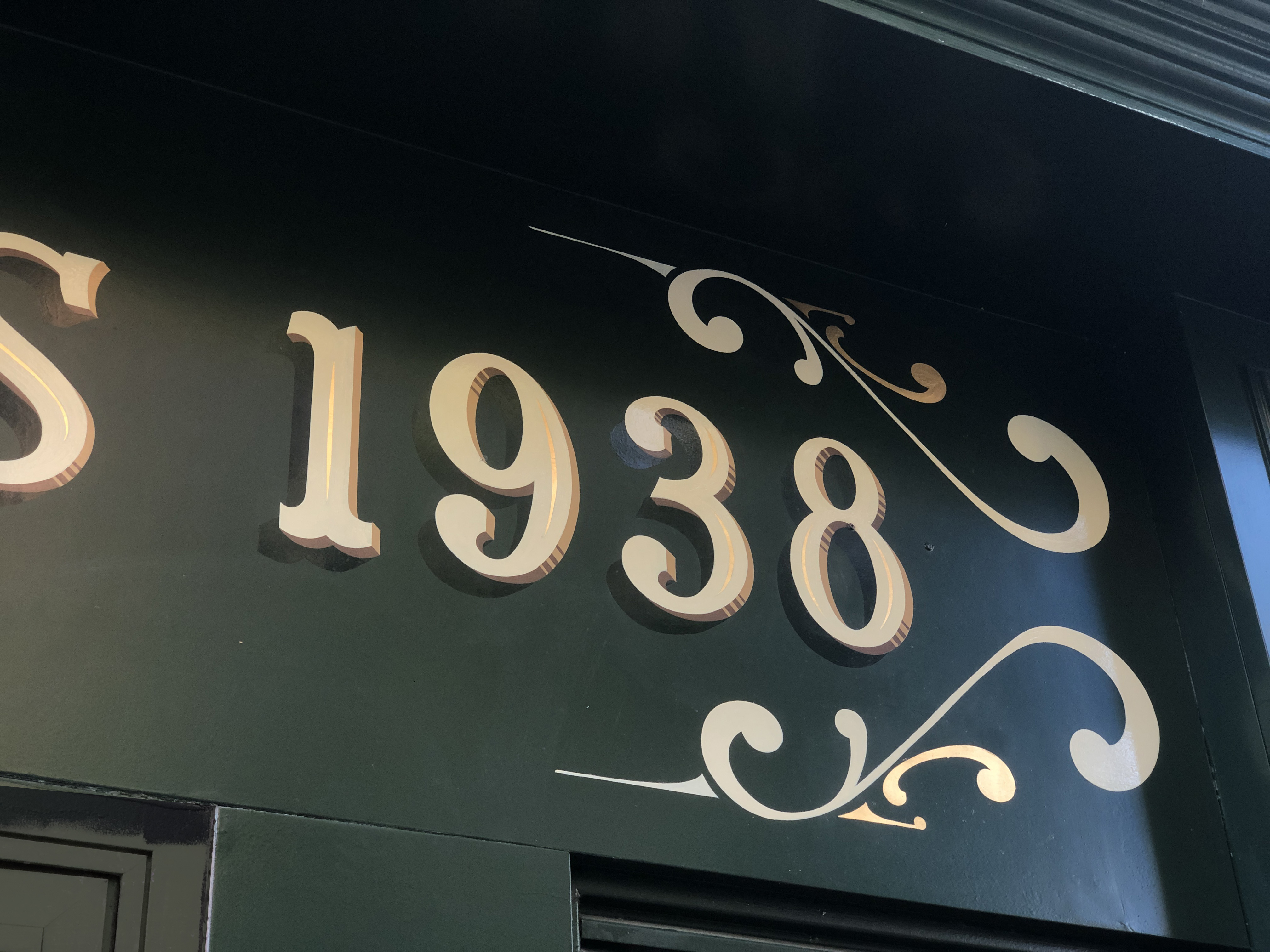 Custom letterings, multiple colors, two colors 3D, drop shadow, 23 carat red gold leaf details, flourishes in paint and gold. It was a blast to work on this one, and as usual, a pleasure to collaborate with the Gana family !!