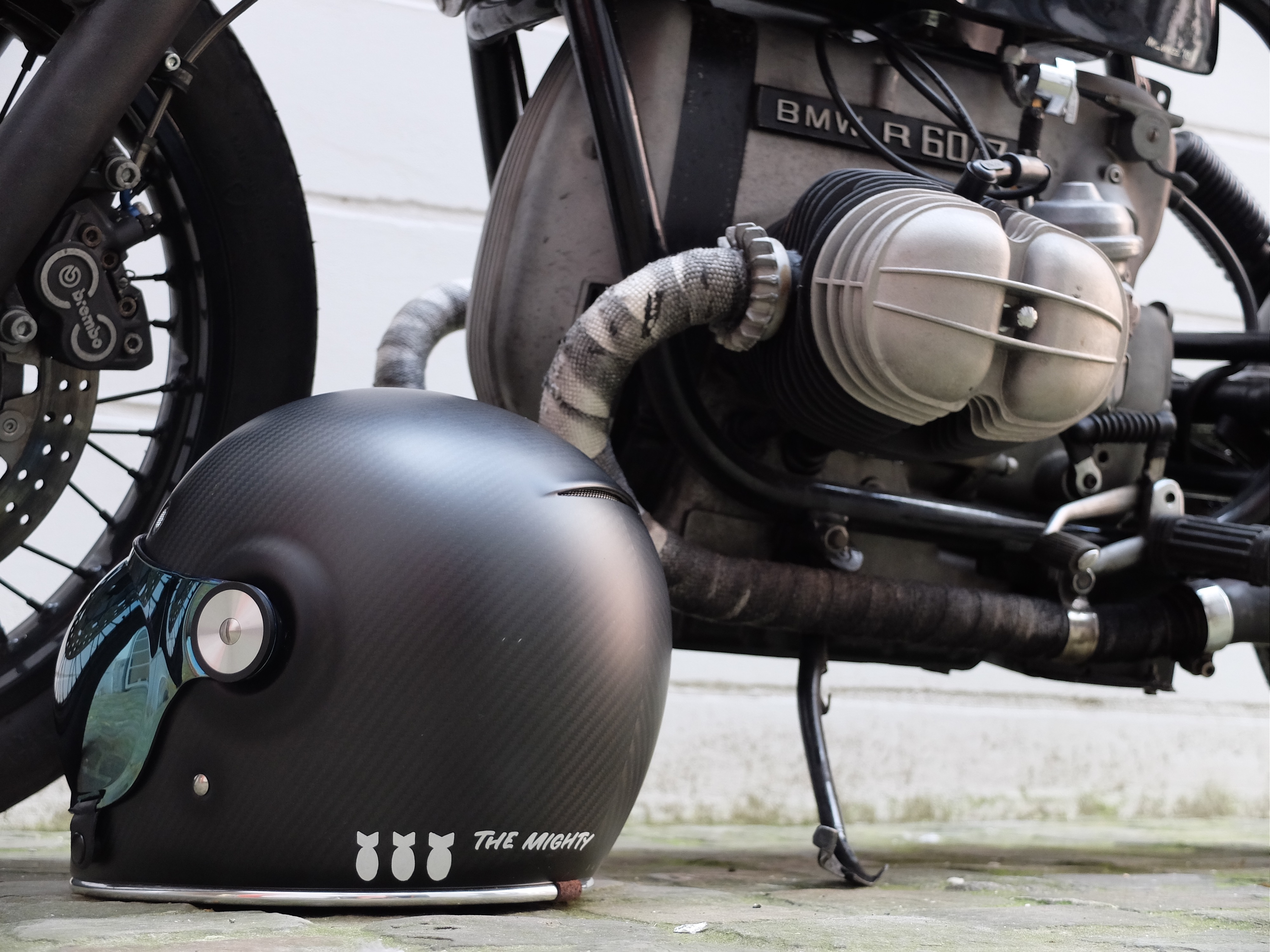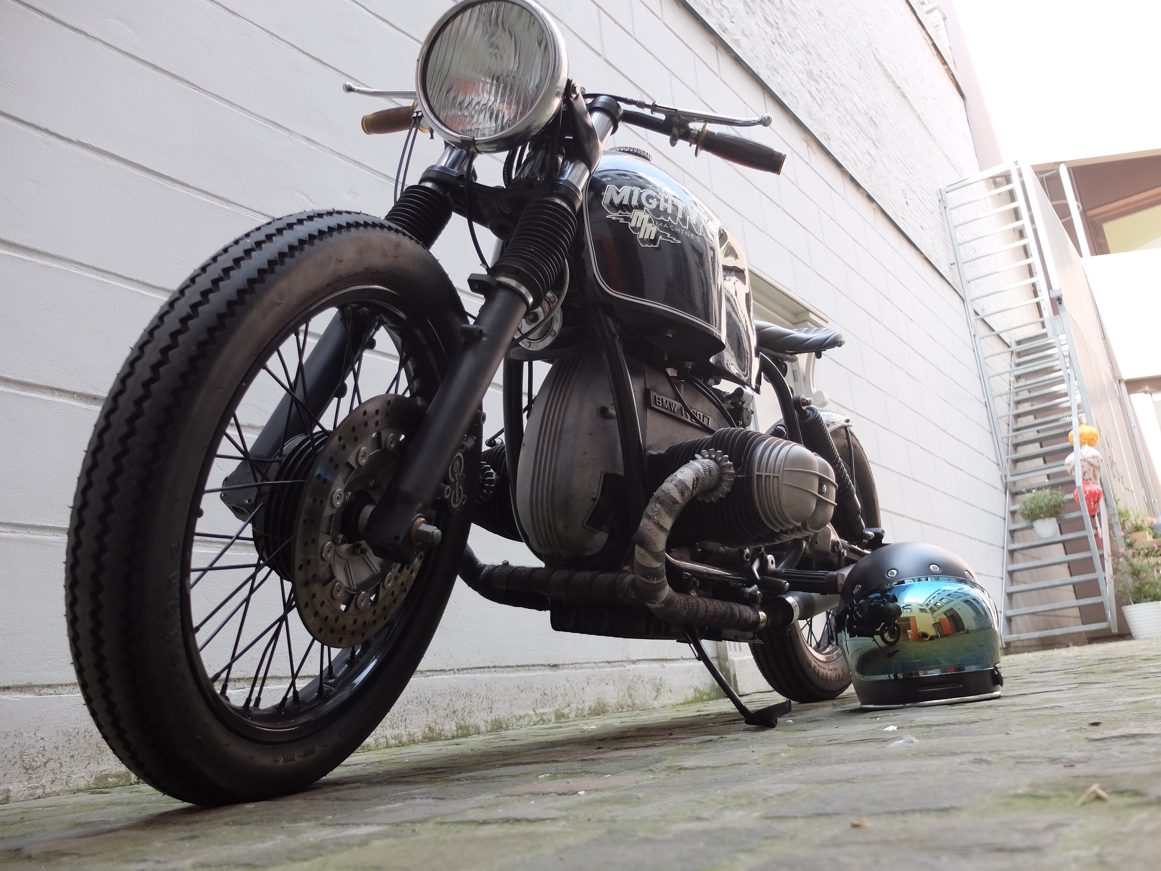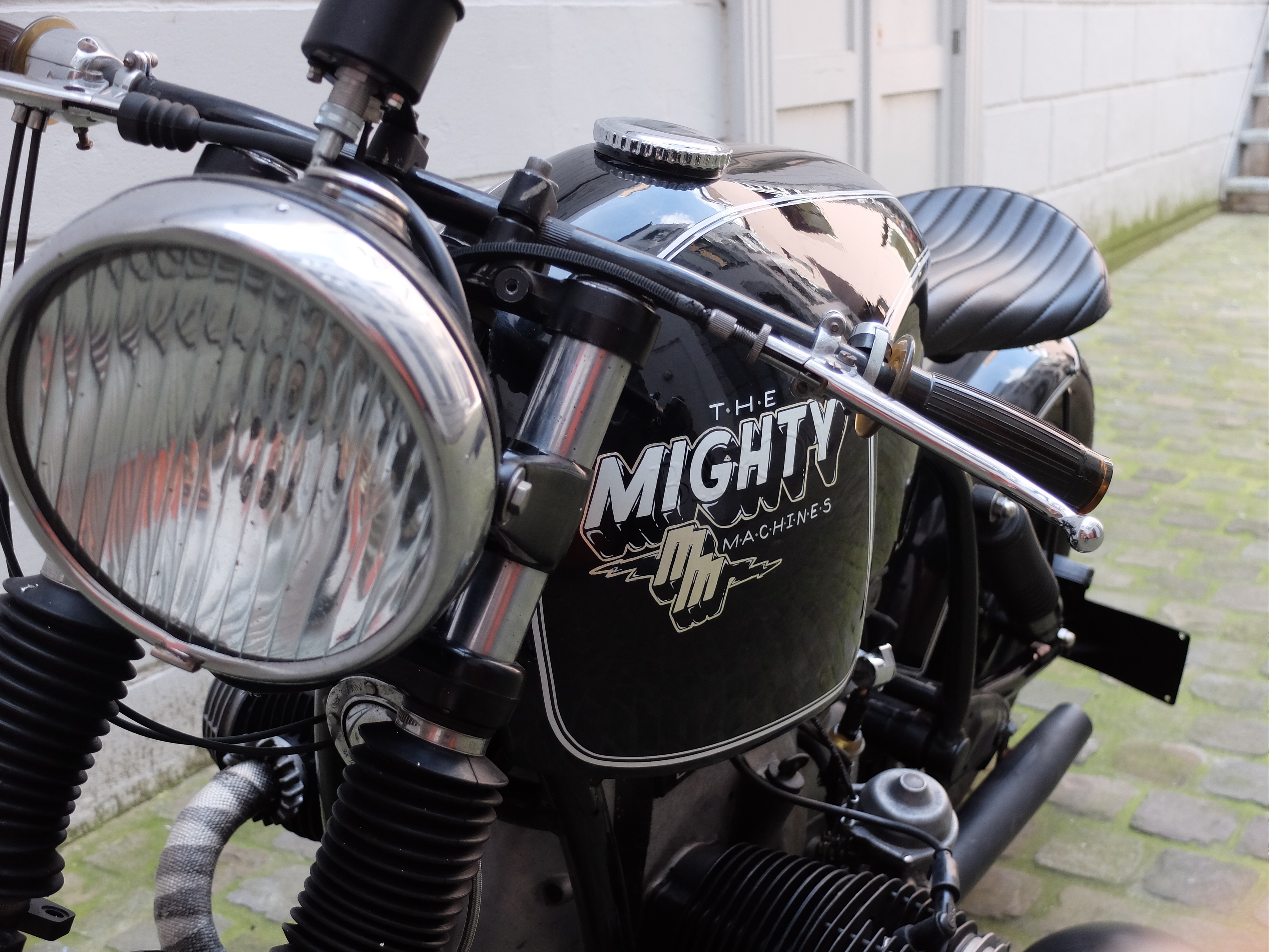 Lettrage sur mesure créé, peint et doré sur un réservoir de BMW R60/7 de 1969 complètement customisé par son propriétaire, un motard Belge venant d’Anvers.