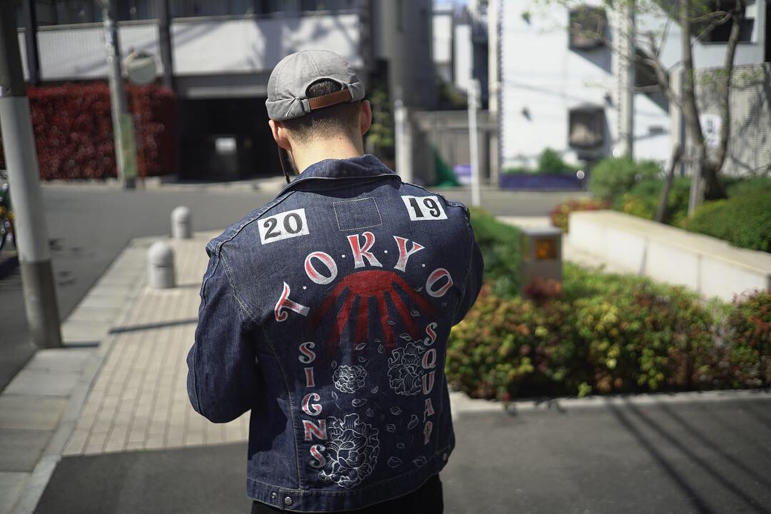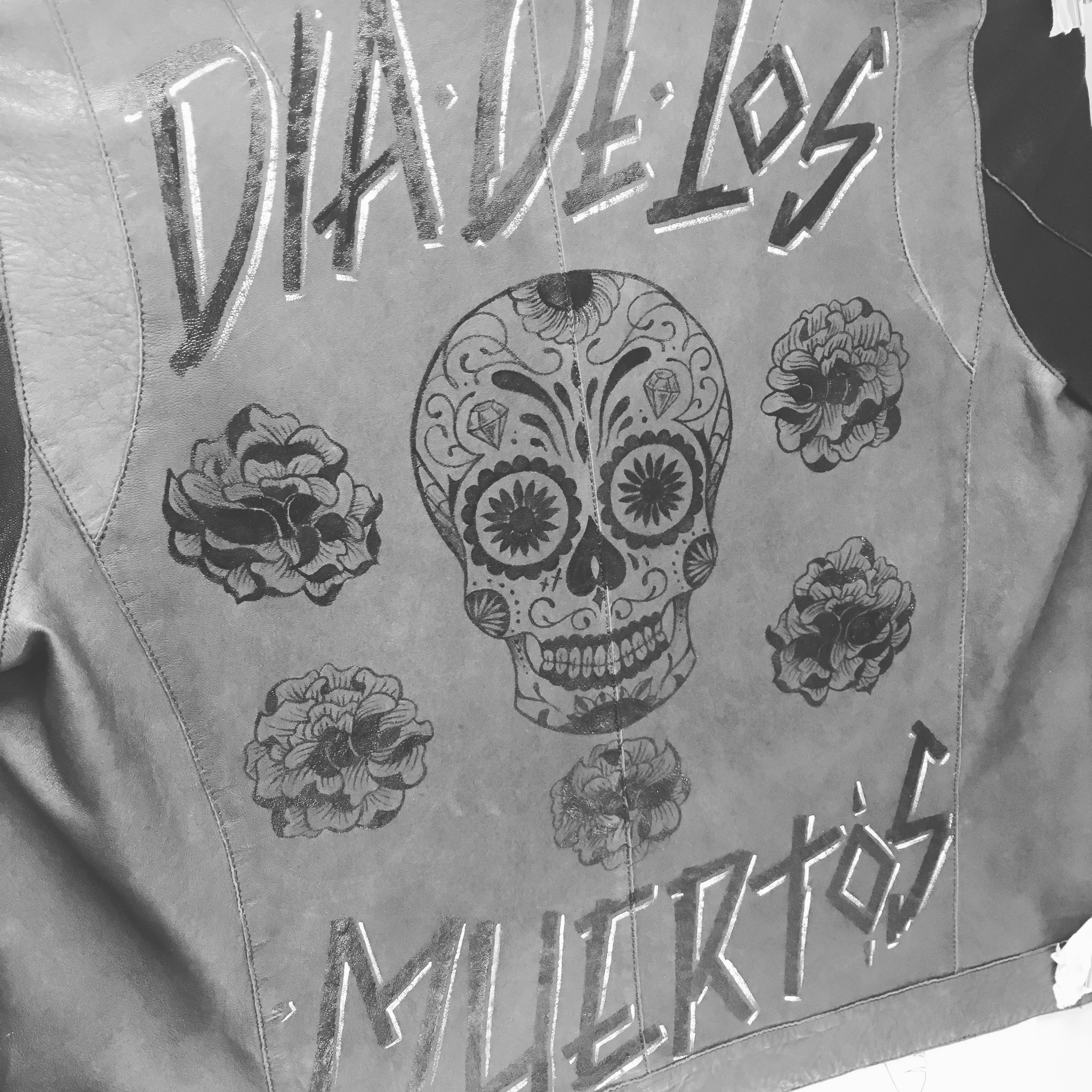 Différentes commandes personnelles et professionnelles, pour des vestes en cuir et jean désignées sur mesure et peintes à la main.