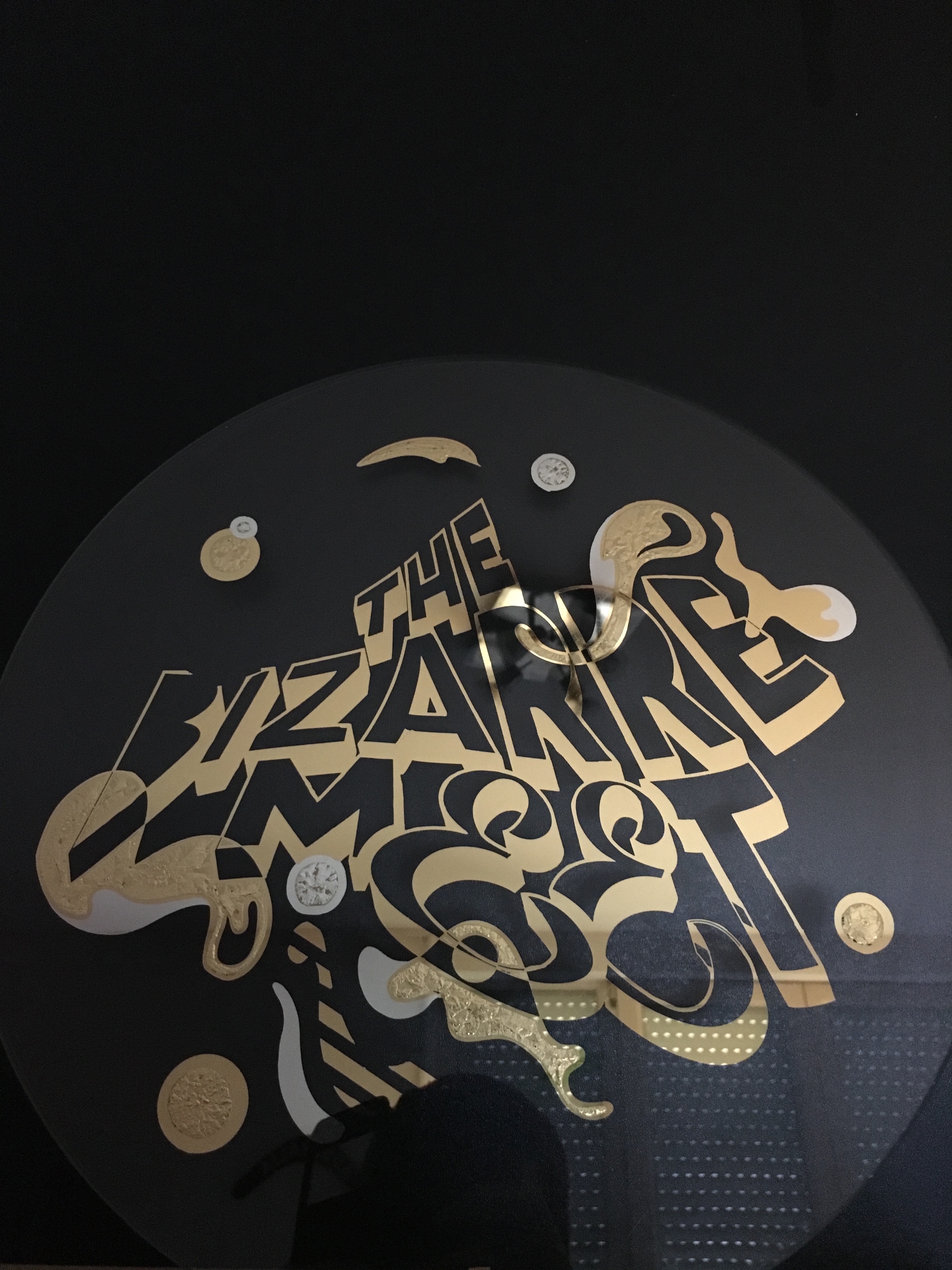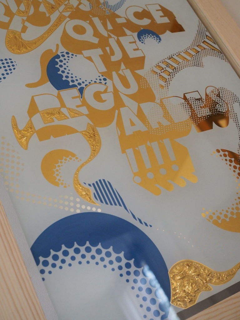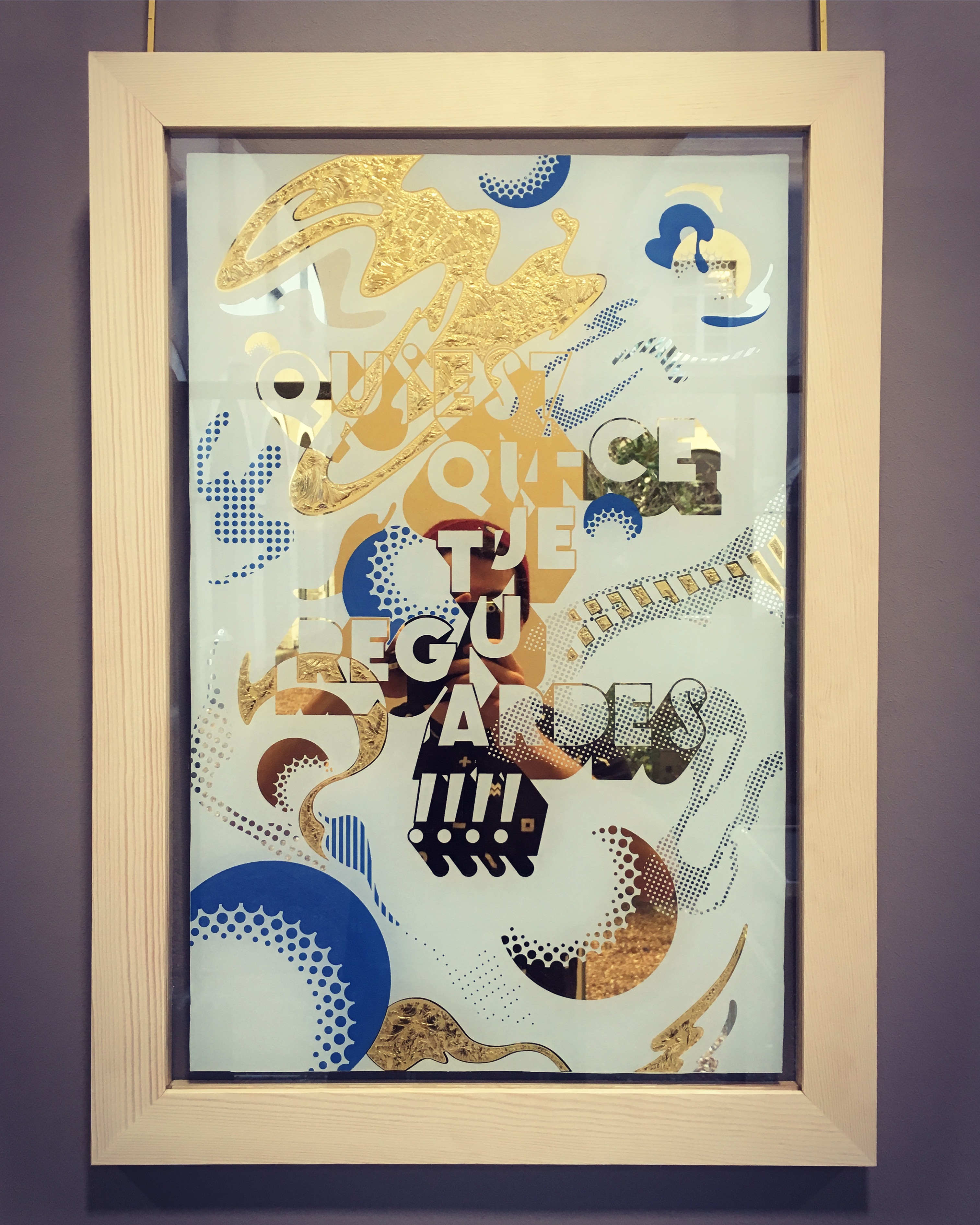 Sérigraphie sur verre, pause de feuille d’or (23 carats, 12 carats), sablage, peinture.. de nombreuses étapes, tout est fait main.