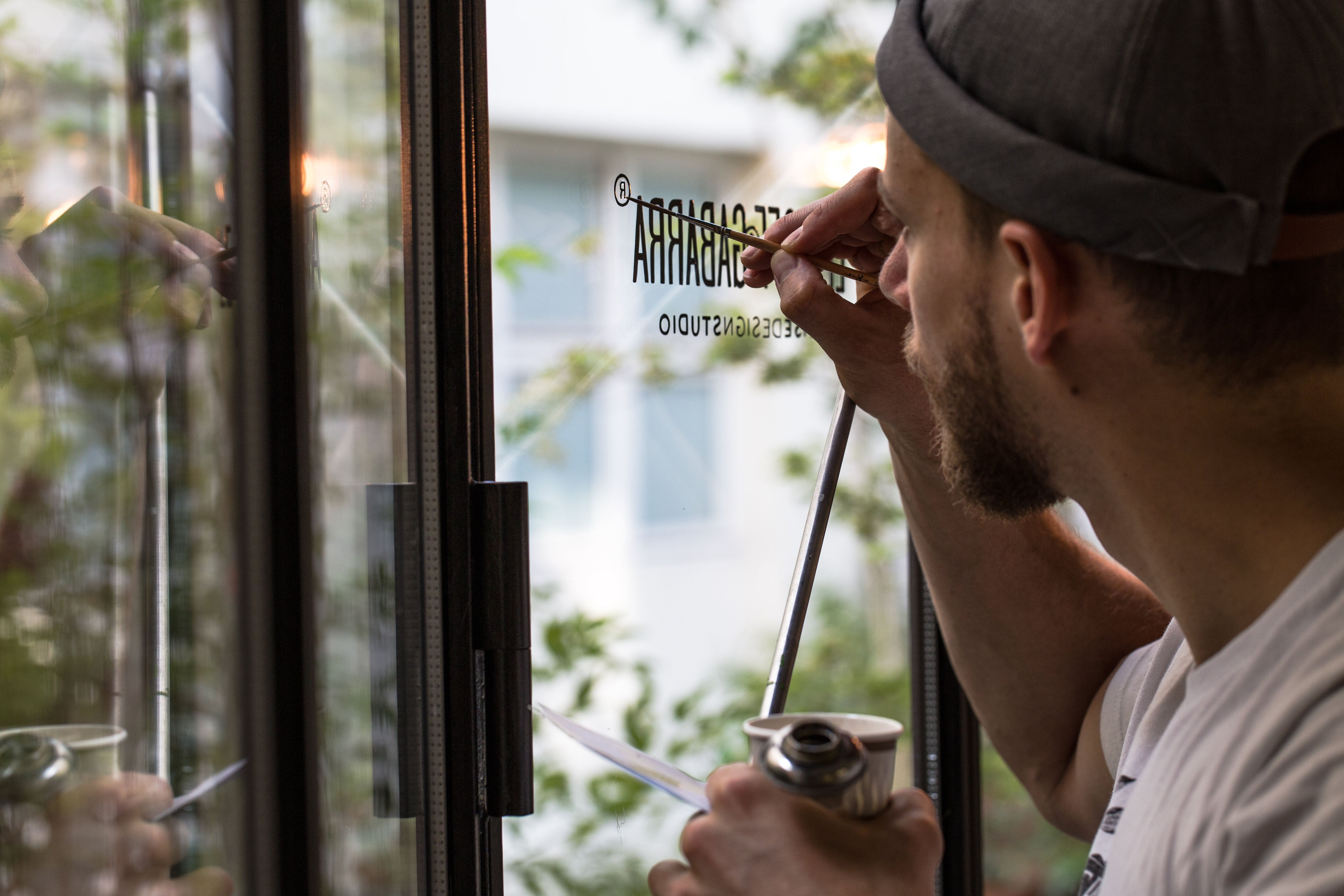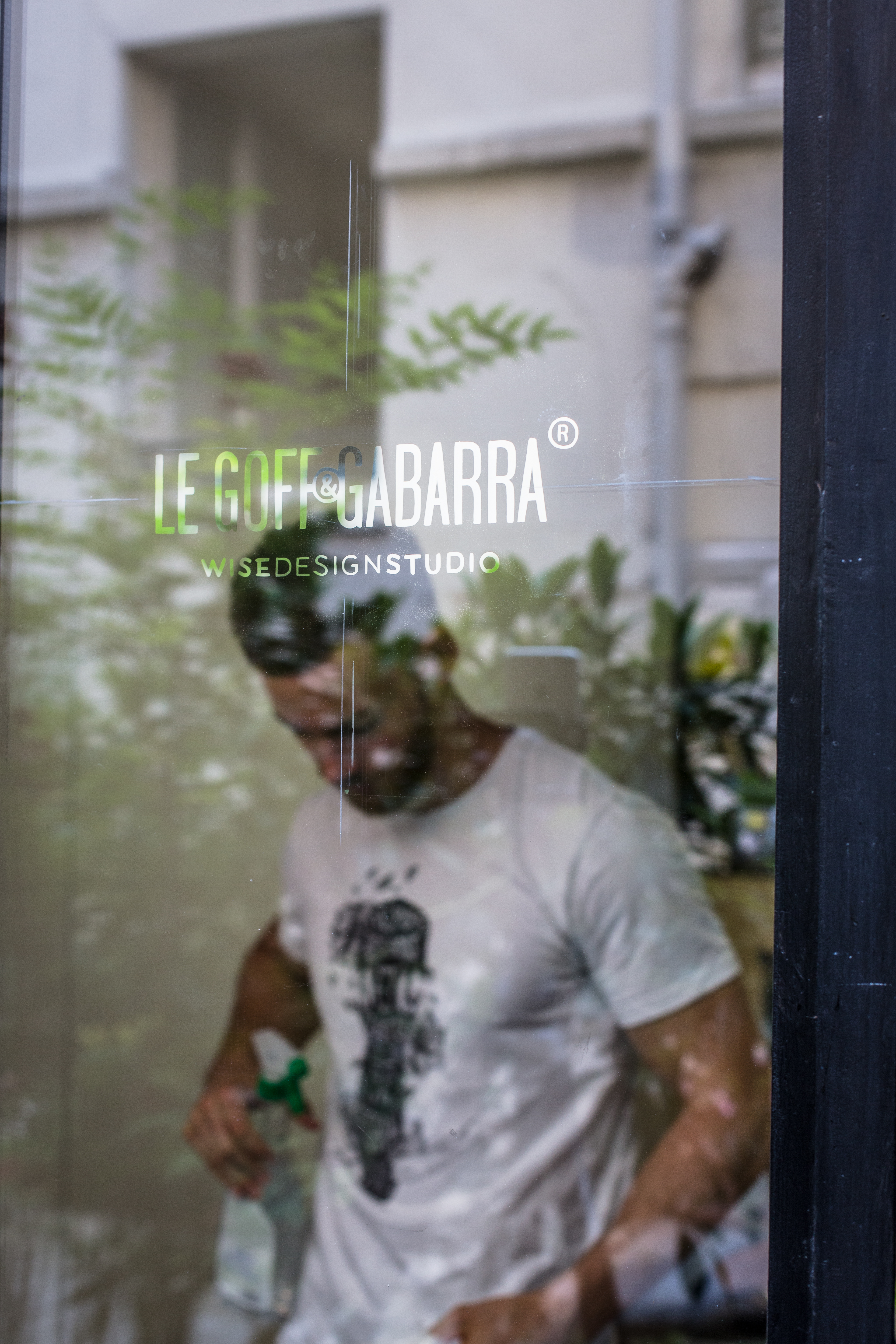Dorure à l’or 12 carats du logo de l’agence parisienne de design Legoff & Gabarra.