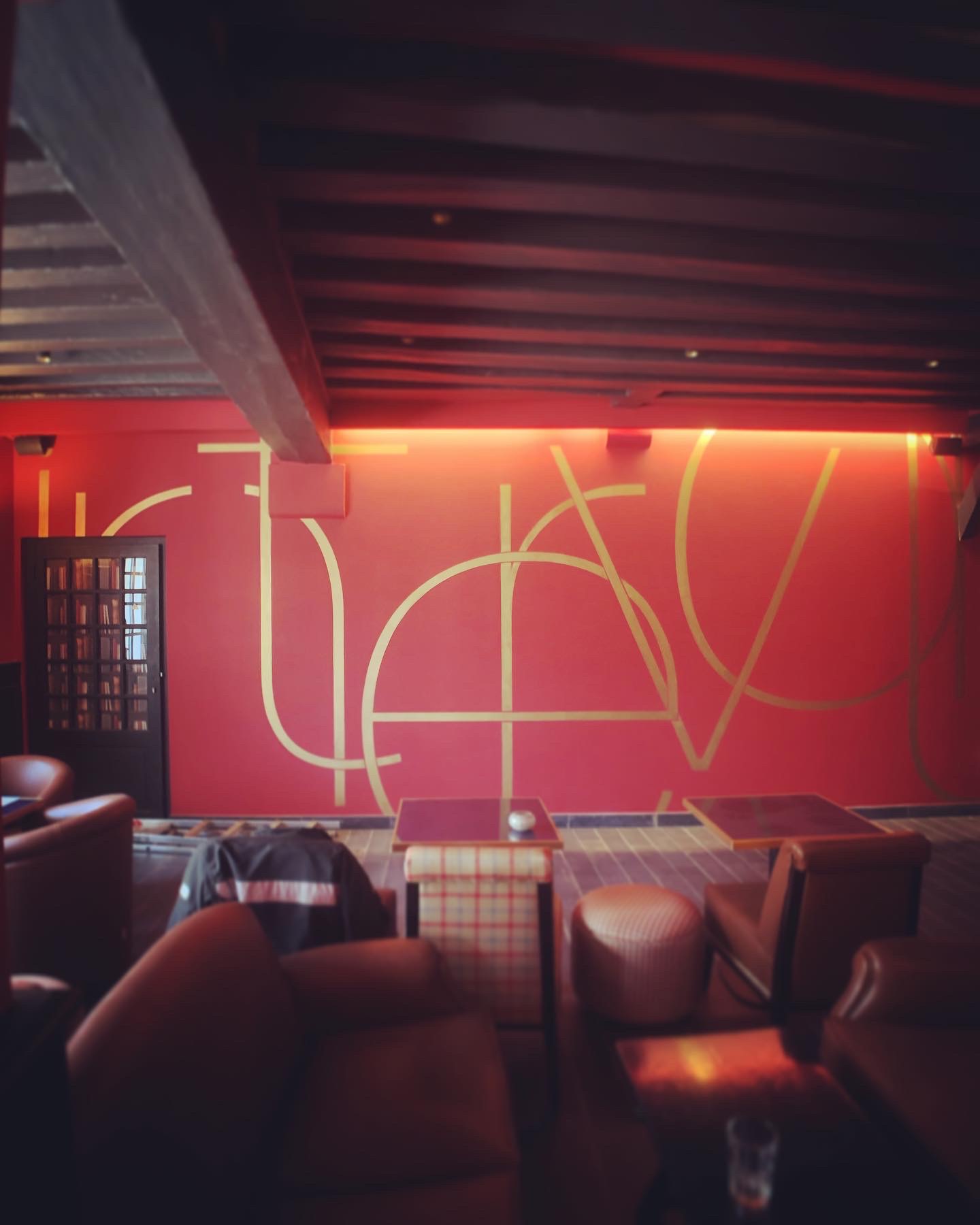 Two big handpainted walls for the restaurant « Les 3 Marchands » in Cours-Cheverny, with the designs of the new identity created by @graphic_armada !